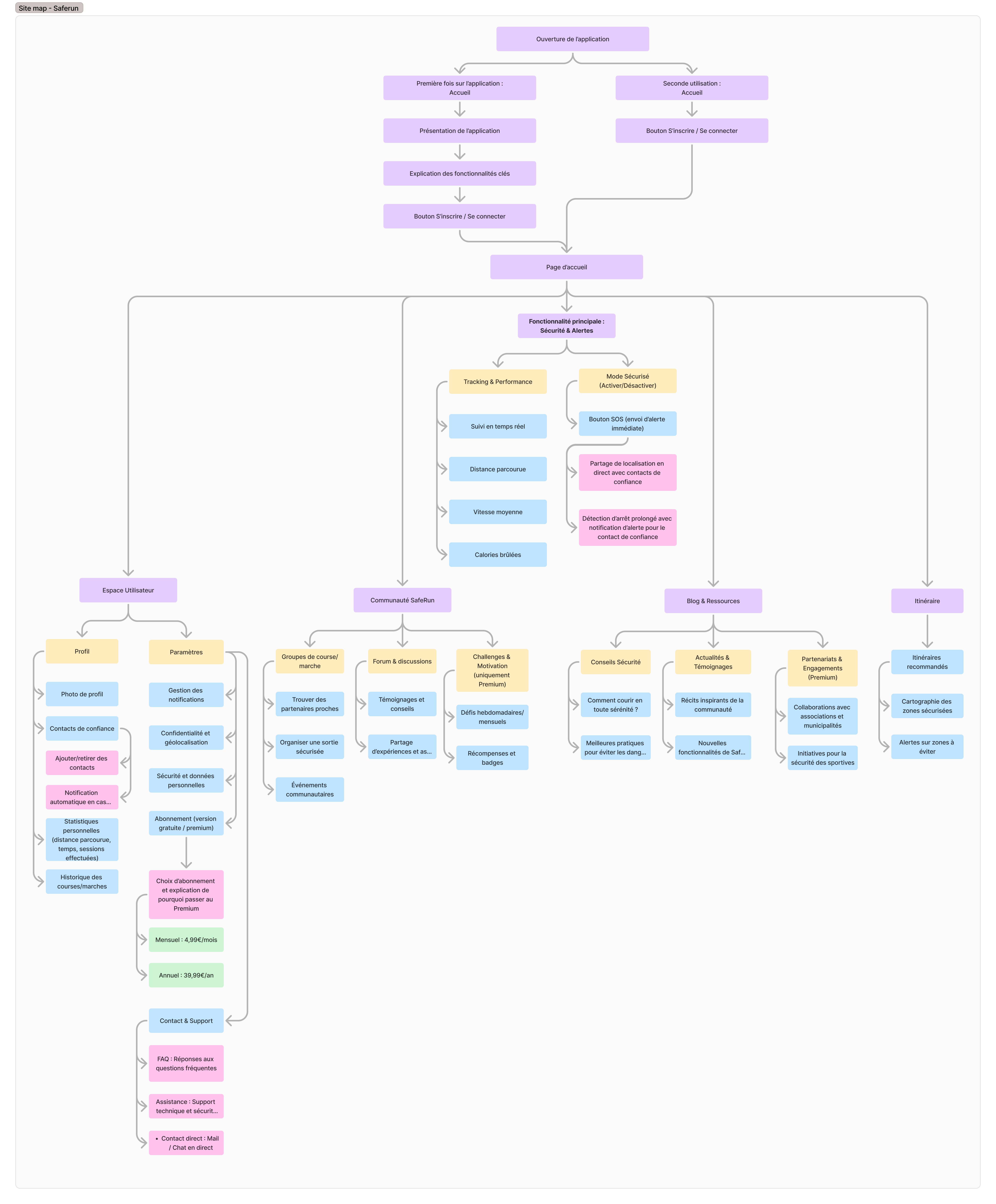 structurelle de l'application. J’ai d’abord réalisé la sitemap pour définir l’architecture globale de l'application et