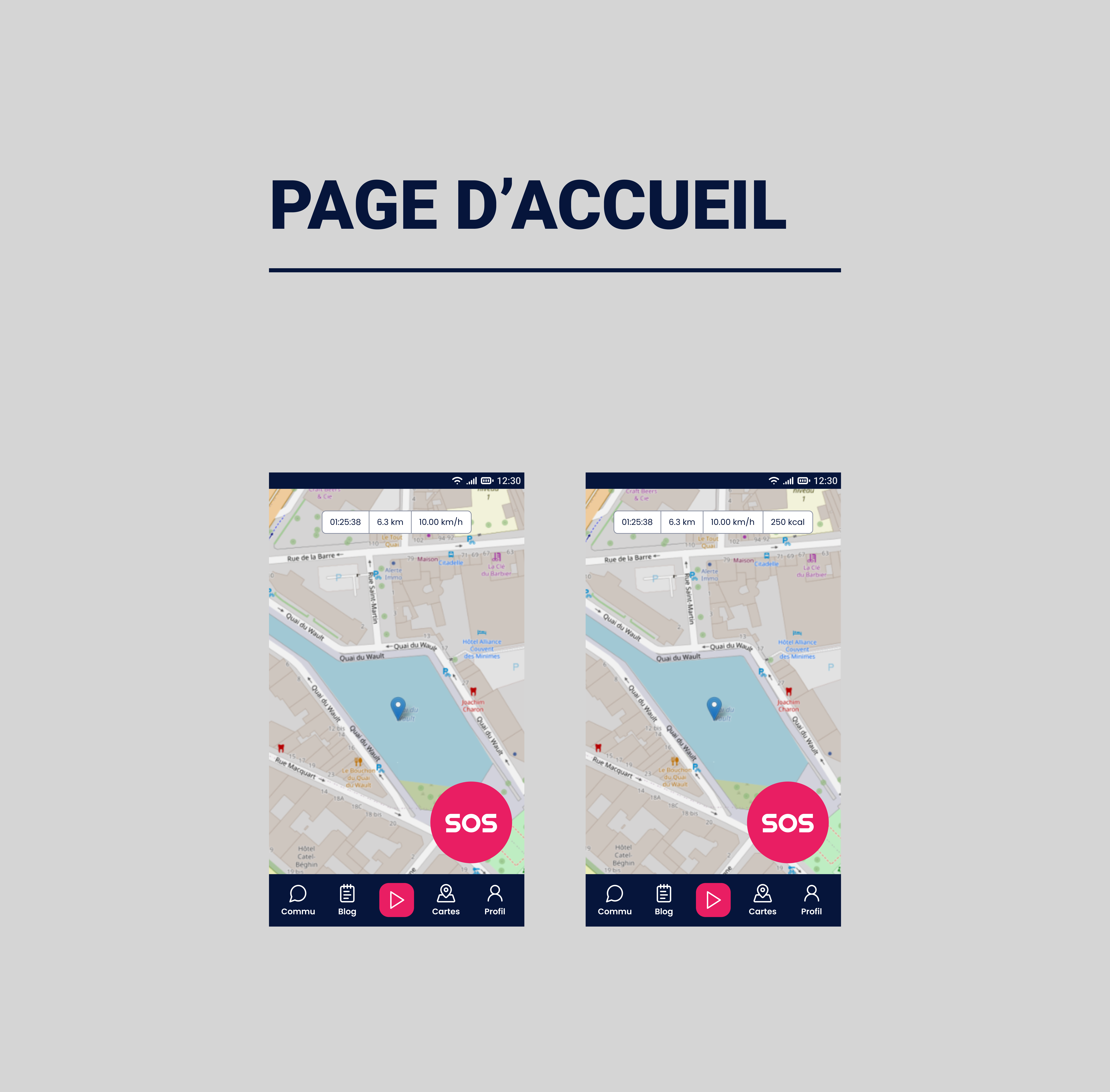 Enfin, j’ai conçu les maquettes graphiques en intégrant la charte visuelle du projet, dans le but de proposer