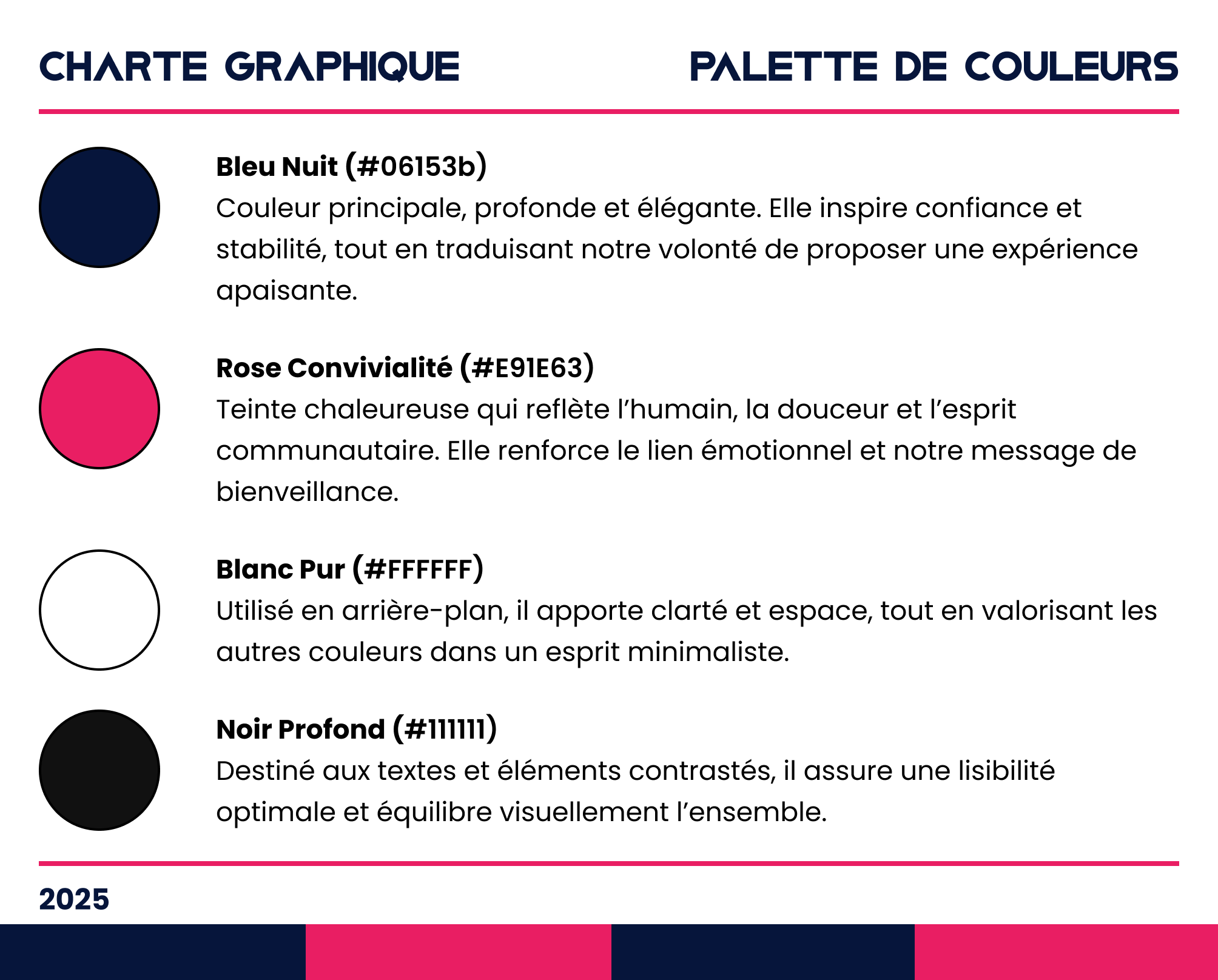 du projet. J’ai défini les couleurs, les typographies et les éléments visuels afin d’assurer une identité cohérente